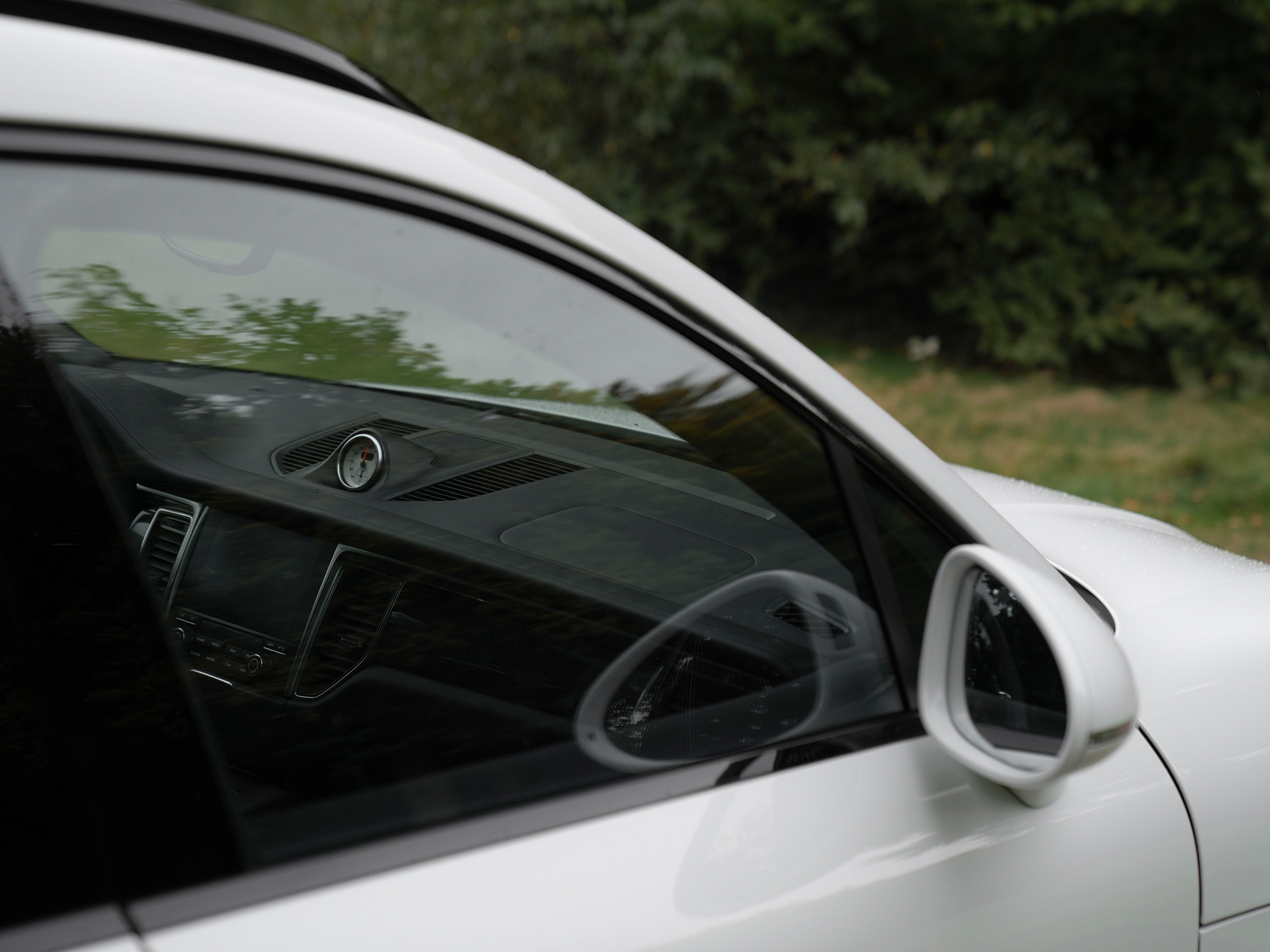 De inzittenden worden dus op hun wenken bediend, maar dat geldt ook voor de omstanders: als toeschouwer van deze maagdelijk witte Porsche Macan GTS word je namelijk getrakteerd op looks die het befaamde sportwagenmerk eer aandoen. De 21 inch grote Sport Classic velgen, het SportDesign pakket met sideskirts én SportDesign buitenspiegels geven de GTS een markant, sportief en onderscheidend uiterlijk. De combinatie met zwarte accenten zorgt bovendien voor een contrast zo sterk als het multifunctionele karakter van de sportieve allrounder. Naast de wielen zijn ook de achtergrond van de LED-koplampen, de grille, raamlijsten, portiergrepen, dakreling, dakspoiler en uitlaateindstukken voorzien van een zwarte finish. Zó opwindend zagen we de compacte Performance-SUV zelden verpakt!