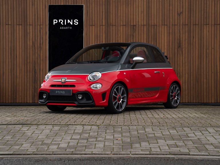 Nieuw binnen: schitterende Abarth 595 C Turismo Bicolore met Akrapovic uitlaat, groot infortainmentsysteem met navigatie, leder etc.