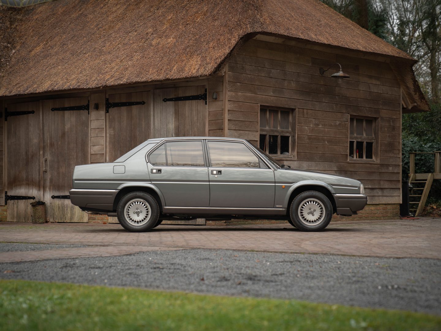 On paper, the Alfa 90 was an elegant sports sedan. The design is straightforward, but the details are exciting. For example, note the ‘extended’ C-pillars for a better rear airflow; a featurethat has been applied by countless car manufacturers in the modern era to give the efficiency of their models an extra boost. The red light bar connecting the rear units, is something we see on today’s cars quite often too. However, the position below the license plate instead of above it is still very unique. Also look at the streamlined exterior mirrors, including Alfa Romeo inscription. No need for the iconic grille to make a comeback: fortunately it never left. A timeless car requires a timeless lacquer. The grey paintwork isn’t only refined, it’salso incredibly sleek. And the overall bodywork is in extraordinary shape!