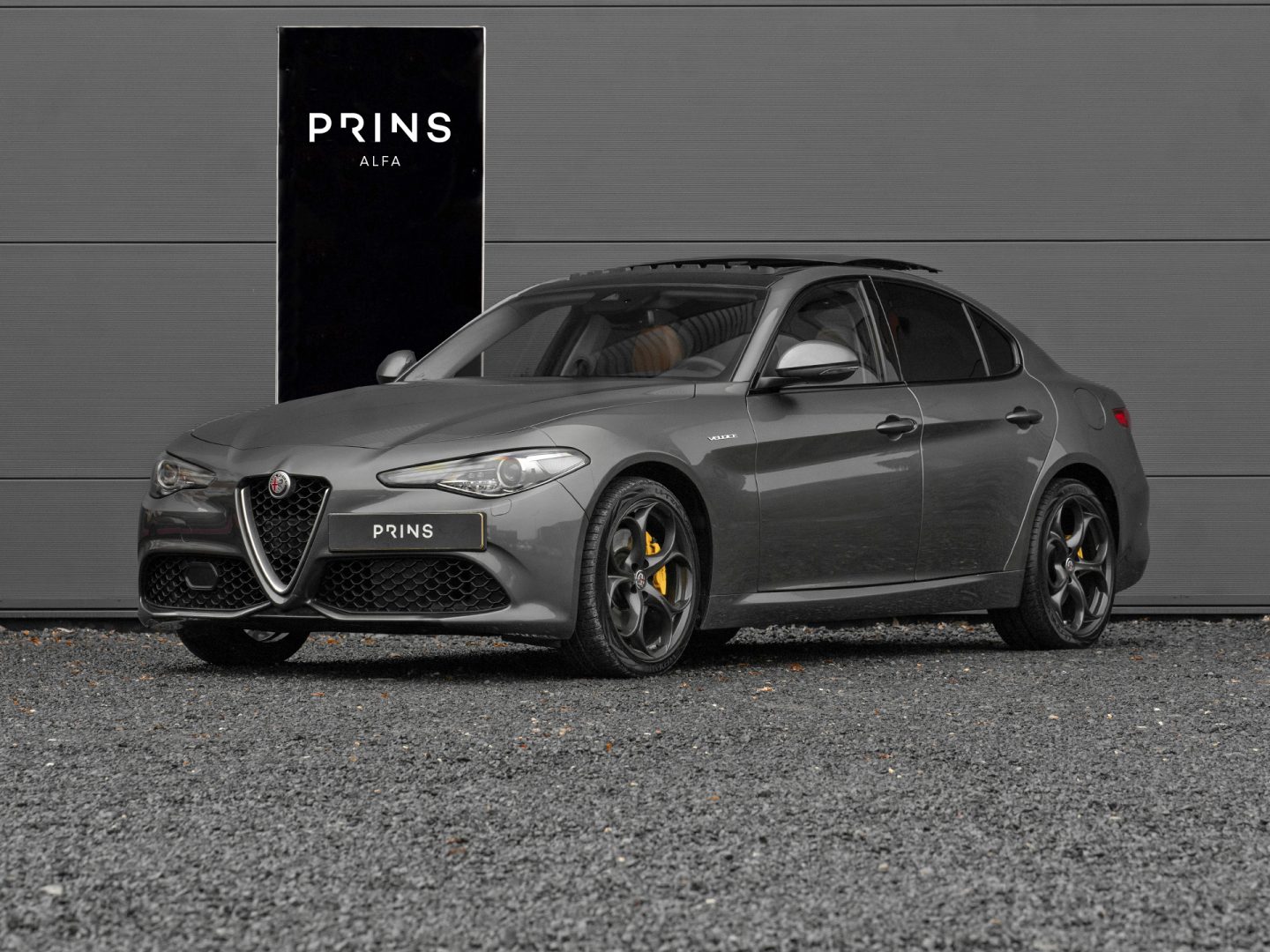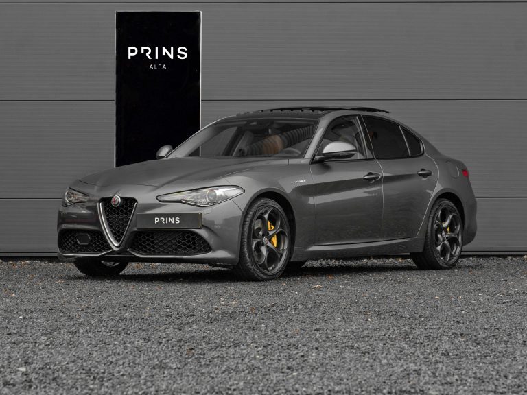 Nieuw binnen, deze magnifiek uitgevoerde Giulia Veloce. Alleen de kleur al: Grigio Vesuvio metallic, ingetogen maar o-z-o mooi! Voeg daar ook nog eens dikke 19 inch velgen met daarachter bijpassende gele remklauwen aan toe en je hebt een configuratie die zijn weerga niet kent! Zeker met de dikke bumper-partijen die de Veloce kenmerken.