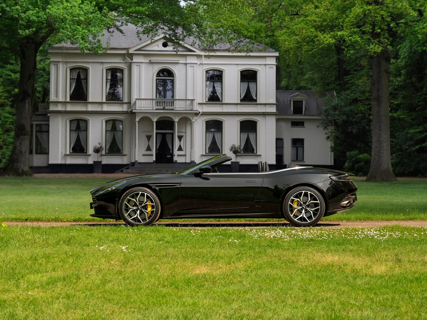 Een opvolger van de bloedmooie DB9 tekenen moet een ware nachtmerrie zijn voor elk beetje zelfrespecterende designer. Want hoe kun je iets creëren dat ook maar enigszins kan tippen aan de uiterlijke perfectie die de DB11 zijn voorganger uit alle poriën ademde? Aston Martin deed een poging en slaagde warempel. Zowel de coupé als de Volante overtreft alle verwachtingen: de proporties zijn krachtiger en de rondingen sierlijker dan ooit. Diverse hightech designfeatures lopen naadloos over in traditionele kenmerken; dit maakt het klassieke charmeoffensief uit Engeland compleet! Zo blijkt “Mission Impossible” tóch mogelijk te zijn… Extra mooi is het feit dat dit exemplaar over een heuse “Out of Range colour” beschikt, namelijk een metallic variant op de Onyx Black lak. De diep donkere gloed maakt dat iedere sterveling spontaan geneigd is om in een zwart gat te duiken. De 20 inch grote bi-color wielen, glanzende grille en andere chromen versieringen uit het Bright Exterior Finisher Pack helpen de duisternis enigszins te doorbreken. Iets wat de Smoked achterlichtunits overigens niet lukt. En dat is geheel bewust. Gele remklauwen met Aston Martin opschrift lijken iets te willen roepen over de stopkunsten van de DB11 Volante. Maar dan moeten ze wel tegen puur V8-geweld zien op te boksen…