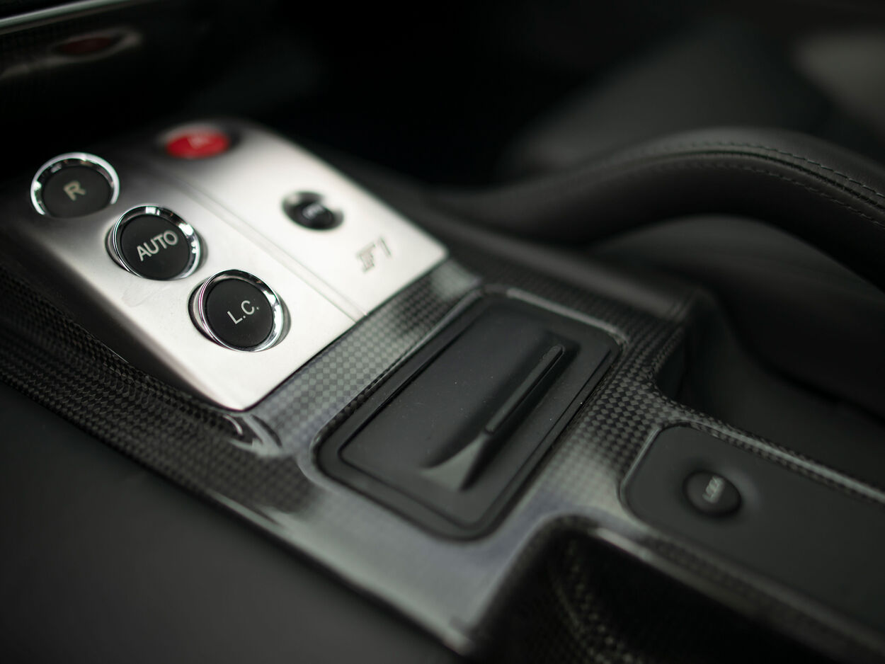 Binnenin qua kleurgebruik geen verrassingen. Het ingetogen Nero leder staat in schril contrast met de opwindende vormgeving en materialen. Het 599-binnenste is een knap staaltje Italiaans design, voorzien van heel veel carbon. Zo zijn onder andere delen van het dashboard, de middenconsole én de elektrisch verstelbare stoelen eruit opgetrokken.