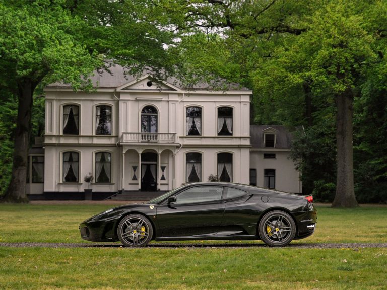 Een F430 in Nero Daytona kostuum met Scuderia Ferrari Shields en antracietkleurige velgen met erachter Giallo remklauwen, is als een Batmobile ontworpen door een Italiaans designhuis. De oorspronkelijke eigenaar was zichtbaar hoofdzakelijk gefocust op de prestaties van de Ferrari, en liet zich niet al te veel verleiden door een uitbundige aankleding. De constante factor was zwart met hier en daar een gele finesse, doorgevoerd tot en met het Nero lederen interieur. Inclusief Giallo rev-counter.