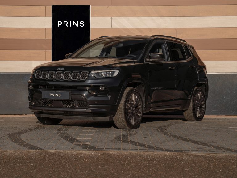 Nieuw binnen: zeer complete Jeep Compass 4xe 240 Plug-in Hybrid Electric S in het Carbon Black metallic met oa. 360 camera, stoelverwarming & koeling, adaptieve cruise control, Apple Carplay, 19 inch velgen, Alpine audio etc.