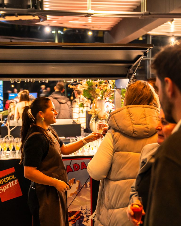 De Prins-werkplaats veranderde voor één avond in een Italiaanse wintersportbestemming. Aperol Spritz, Limoncello Spritz, wijn en bier vloeiden rijkelijk, de glühwein stond dampend klaar en op tafel verschenen gerechten zoals u die van de piste kent. Alles klopte: de smaken, de setting maar vooral de mensen.