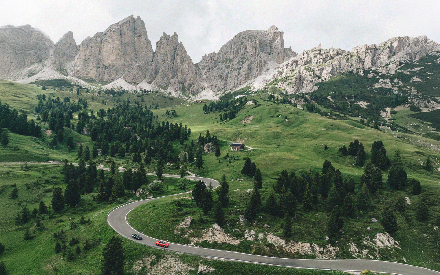 Voor het échte vakantiegevoel mag een beetje comfort niet ontbreken. Daarom pakken we op de maandag een privévlucht naar Bolzano. Veel tijd te verliezen hebben we niet, want bij aankomst gaat meteen de eerste etappe van start. De bestemming? De Dolomieten! Deze Italiaanse bergketen staat bekend om zijn steile pieken. We hebben op dag één dus meteen een sterk stijgende lijn te pakken qua beleving. We eindigen we de dag in een karakteristiek berghotel. De eerste 135 kilometers rijplezier zitten er inmiddels op.