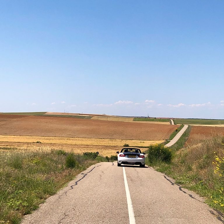 Hoe anders zag de donderdag eruit. Niet qua plezier, maar de omgeving veranderde drastisch van het fris ogende groene gebergte naar het veelal kurkdroge, ruwere binnenland van Spanje. De gestrekte, glooiende stukken asfalt en lange rechte stukken maakten de rit een stuk overzichtelijker. Kortom, blik op oneindig en gáán! Onze zijstapjes dwars door oude, haast uitgestorven dorpjes deden lokaal een hoop stof opwaaien. Hoewel de snelheid er bij ons inmiddels al lang uit was, vond één van de bewoners het toch allemaal net iets te heftig worden. Heel even leek het erop dat de man de schoonheden met een koevoet wilde bewerken – in de WhatsApp groep werd hier al voor gewaarschuwd, maar hij hield zich in. Gelukkig.