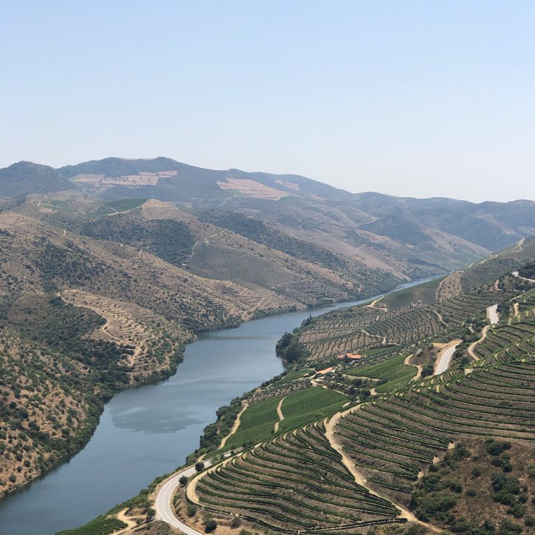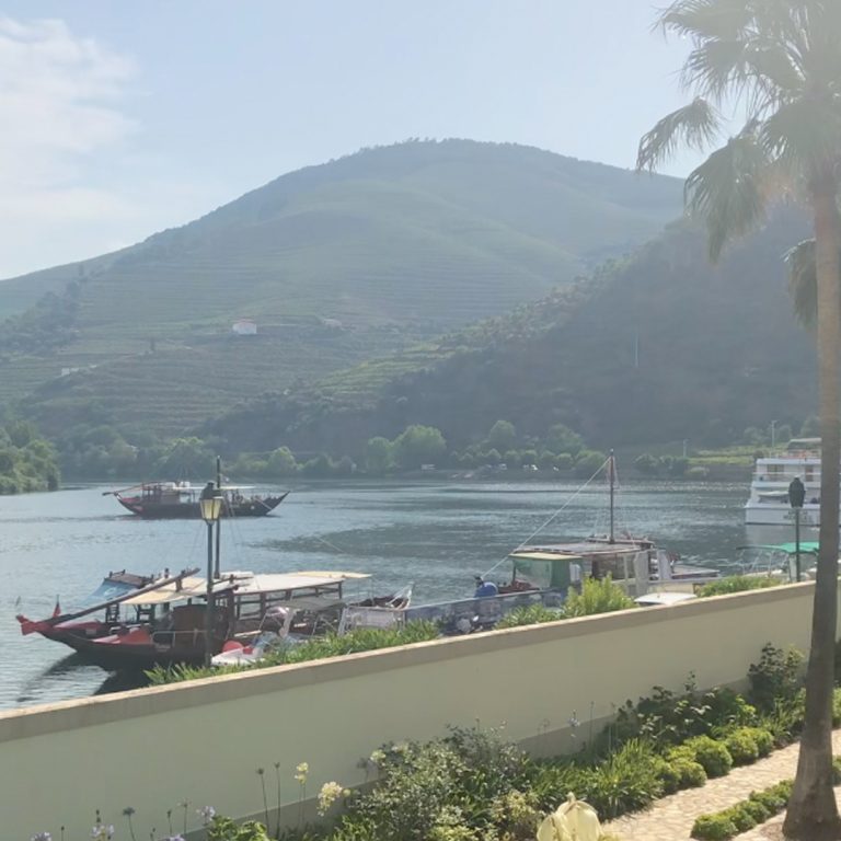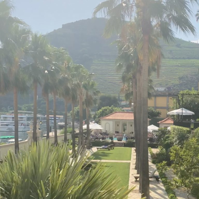Klagen doen we echter niet: eenmaal alle neuzen in de richting van de Douro, trakteerde het Portugese landschap ons op prachtige vergezichten in rustige contreien. De rotsen leken langzaamaan naar de achtergrond te verdwijnen in ruil voor wijnranken. Aangekomen in Douro zien we een ijzeren brug met aan de overkant onze eigen oase, inclusief palmbomen én zwembad. Welkom bij The Vintage House! In deze hitte was er maar één juiste plek voor een welkomstborrel: in (en om) het water!