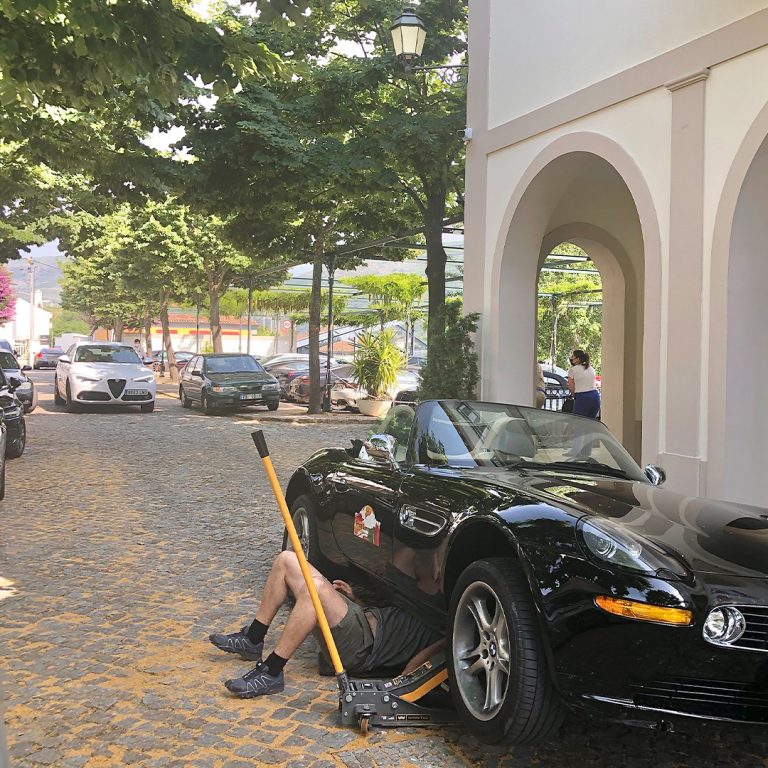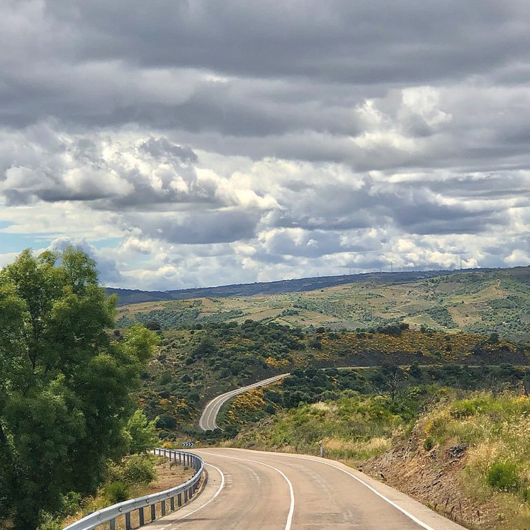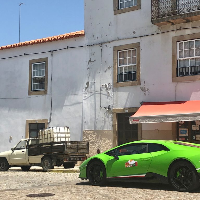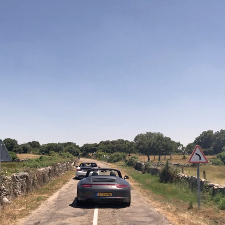 Op naar Portugal! We zaten allemaal nog vol van het schitterende Spanje, maar Portugal bleek in de middag al een waardig opvolger met haar rotsachtige natuur. Wederom was het opvallend rustig op de weg; met uitzondering van enkele boeren en boerinnen plus hun dieren, was er nauwelijks iemand te bekennen. Handig wanneer de auto’s als een kanon worden afgeschoten… De rechte stukken en ruime bochten lieten we in bloedvaart achter ons; stevig bochtenwerk was in aantocht! Een totaal andere belevenis om hier te rijden, maar opnieuw een zeer fraaie. Ook de lunch vond plaats in een beeldschone omgeving. Eenmaal in de buurt van Douro Valley, ontdekten we een architectonisch hoogstandje: Cao Museum, bestaande uit een groot stuk beton weggewerkt in een rots, met een parkeergelegenheid op het dak. Nooit gedacht dat een kunstwerk voor zo’n oogverblindend mooi uitzicht kon zorgen! Nóg een voordeel van een modern stukje design: binnen was het aangenaam koel in vergelijking met de 34 graden Celsius die de temperatuurmeter buiten liet noteren…
