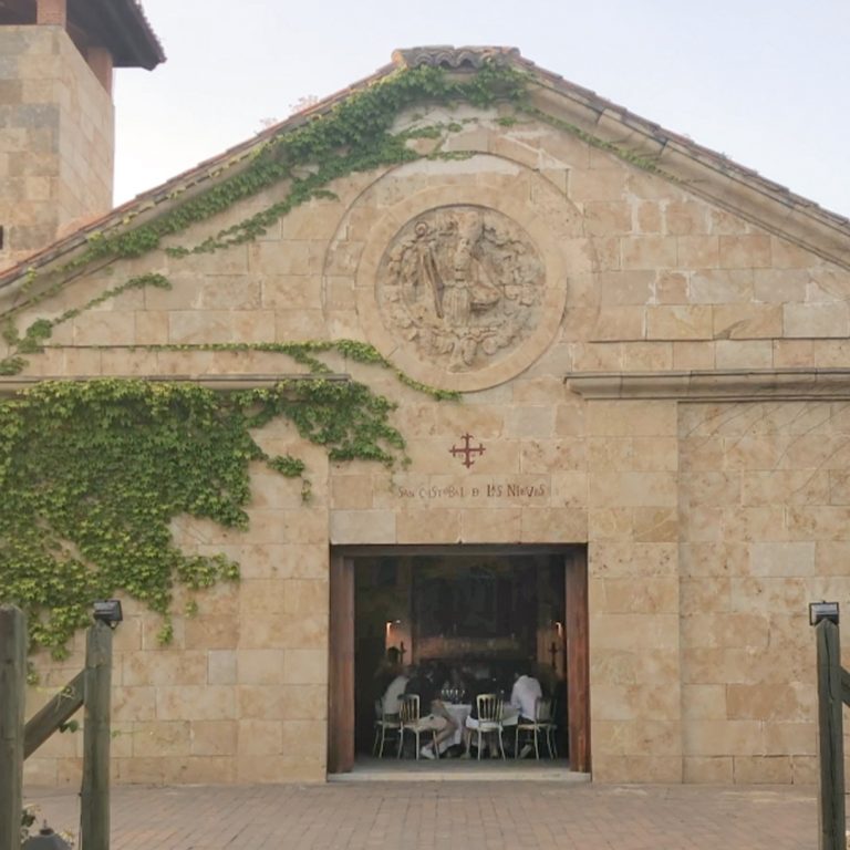 Amper bijgekomen van deze memorabele rit, streken we in één van de stoffige dorpjes neer bij een heuse Bodega. Hier werden we getrakteerd op een uitgebreide barbecue middenin een meters diep gelegen, zeer gezellige wijnkelder. Ondertussen hield de zon de auto’s goed op bedrijfstemperatuur. En dat is maar goed ook, want daarna was het nog een klein stukje vlammen naar Hacienda: een adembenemend mooie plek. Misschien wel de mooiste van de week! In een Romeins aandoend buitenbad werden we op onze wenken bediend met koude drankjes. Na een hoogst smaakvolle wijnproeverij was het tijd om heerlijk te dineren in de Kapel van het landgoed. We waren in bijzonder gezelschap: een ooievaar had zijn nest gevuld met jonkies.